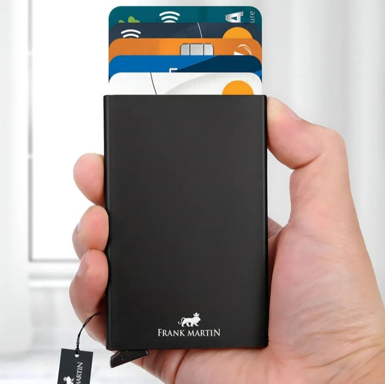 جا کارتی اعتباری هوشمند جعبه ای نازک یونیسکس مکانیزم تیتانیومی چند محفظه ای دارای طرح بندی و رنگبندی تعداد حجم کارت 10 عدد ضد ضربه قابل شست و شو